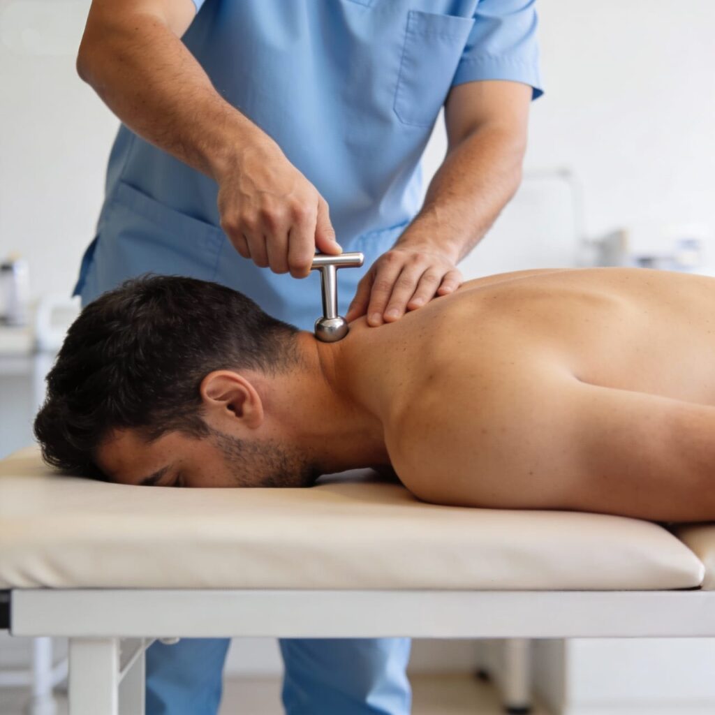 جلسات المعالجه اليدويه غالباً ما تعطي نتائج إيجابية وسريعه في الآلام الأعصاب الحاده بسبب تحريك الفقرات الضاغطة على الغضروف .